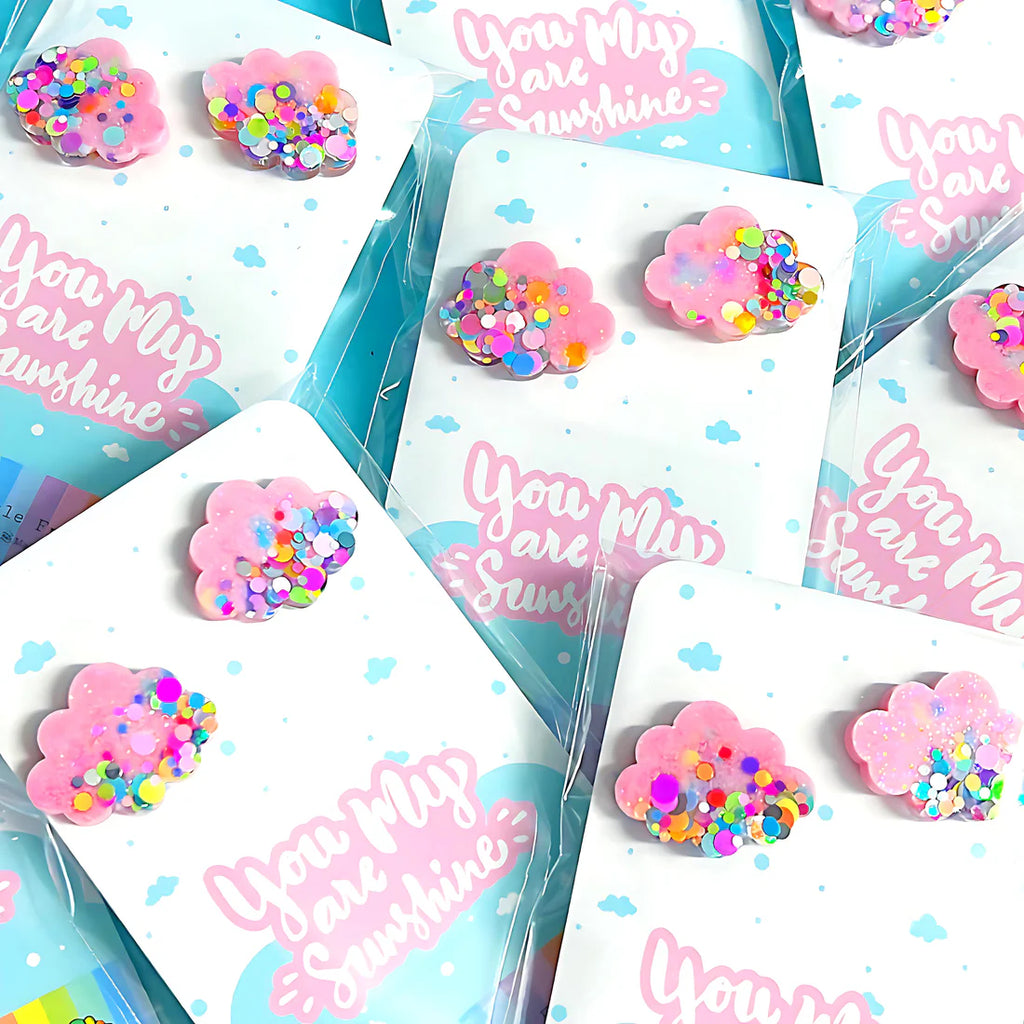 FUNFETTI MARSHMALLOW PINK CLOUD STUDS