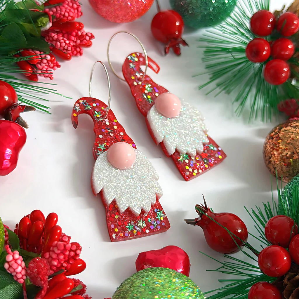 HELLO LITTLE SANTA GNOME : Red Stardust : Handmade Resin DROP Earrings