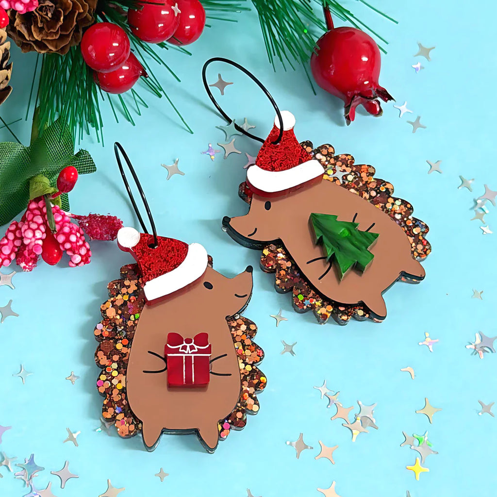 HELLO LITTLE HEDGEHOGS : CHRISTMAS : Handmade Resin & Acrylic DROP Earrings