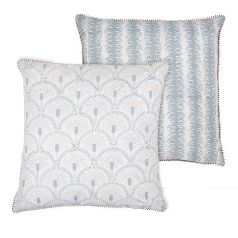 Inaya Cotton Block Cushion 50x50cm Blue