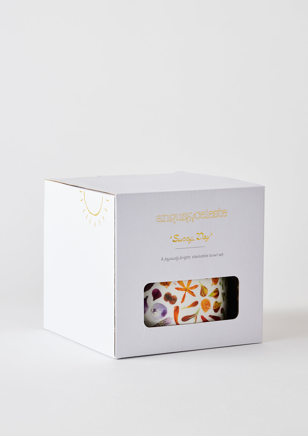The sun is always shining with the Angus & Celeste Sunny Day Stackable Bowl Sets. Handcrafted from high-fired porcelain and decorated with our original, botanically inspired A&C artwork. The bright and colourful patterns are striking on the crisp white porcelain and are sure to bring some light into your life and kick-start your daily rituals.