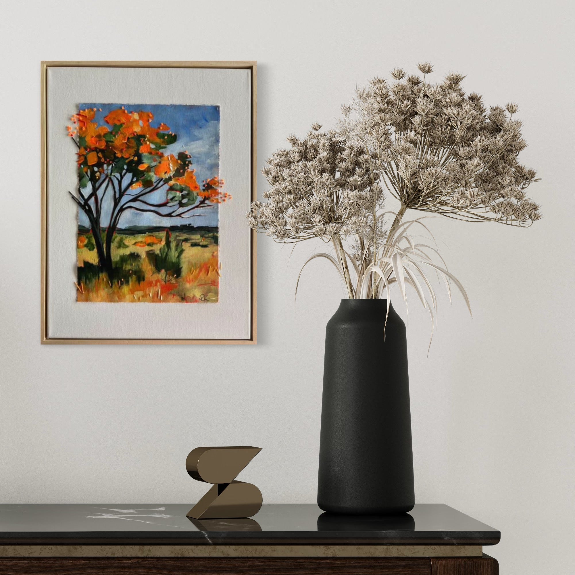 Mixed-media painting - acrylic, charcoal, inks, pen and embroidery thread. Framed & ready to hang.