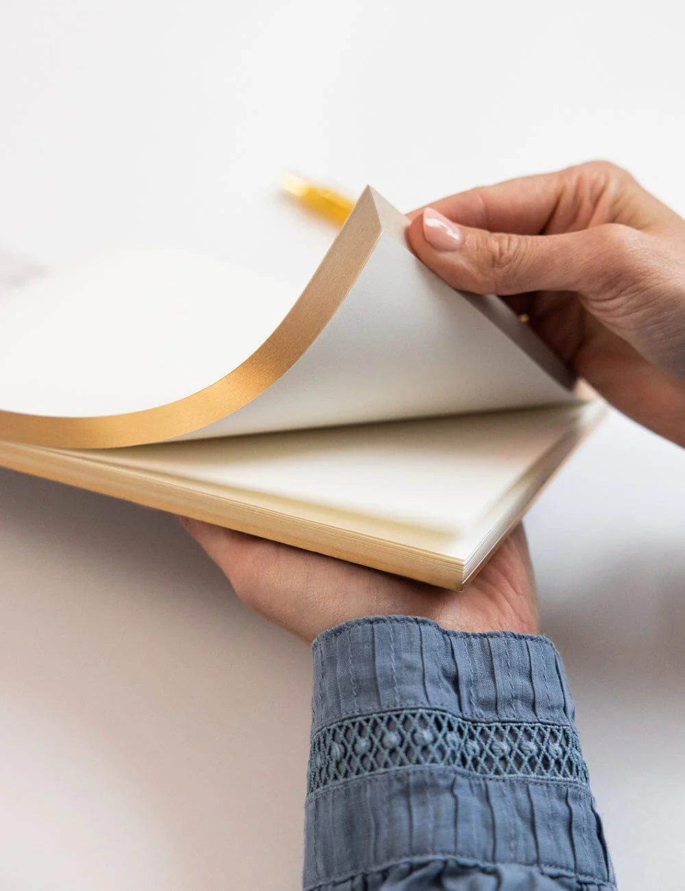 Illustrated by Christine De Carvalho, Featuring 100 heavyweight tear off blank pages. Bound with a gummed edge, and full heavyweight wrap around cover. Removable Gold Foil printed Bellyband and gold foil and gilded edges.