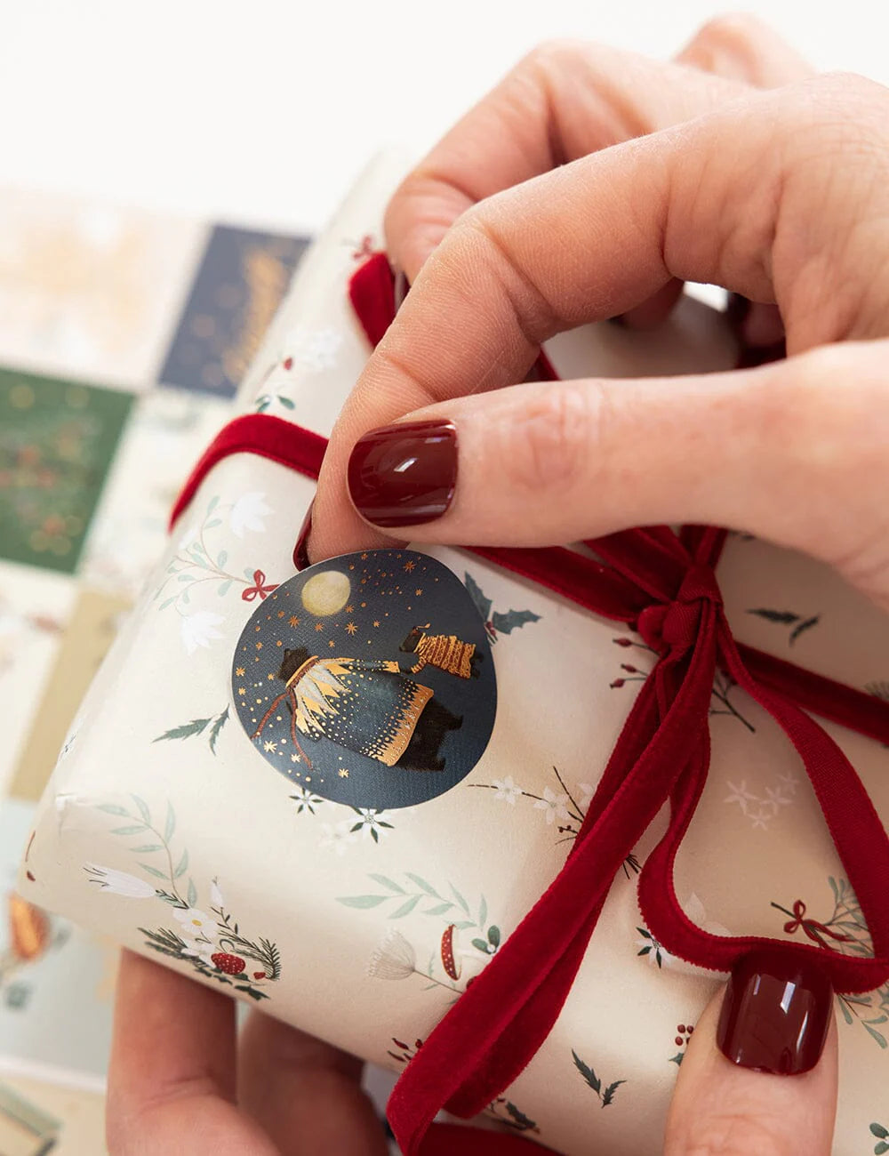 "The Christmas Village" gold foiled adhesive stickers.