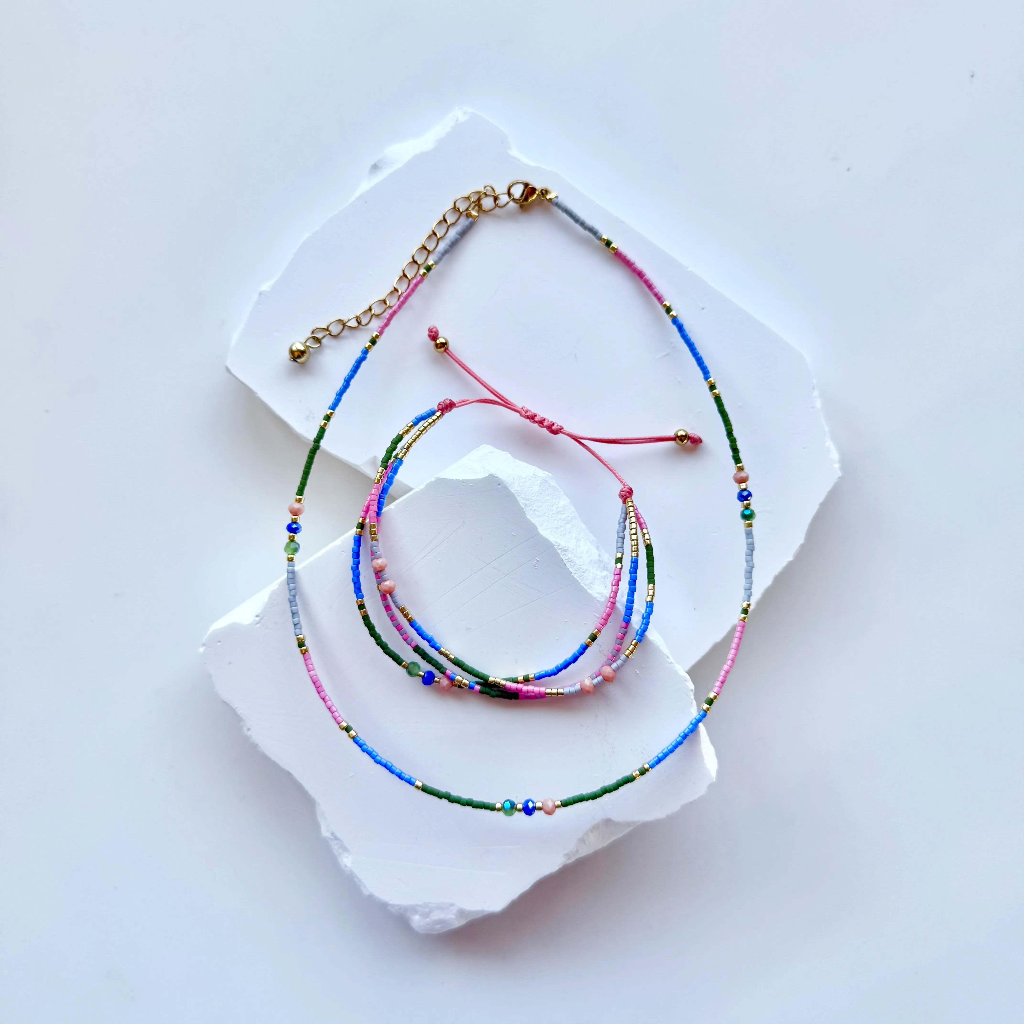 Indie Layers Bead Bracelet - Pink/Moss/Blue