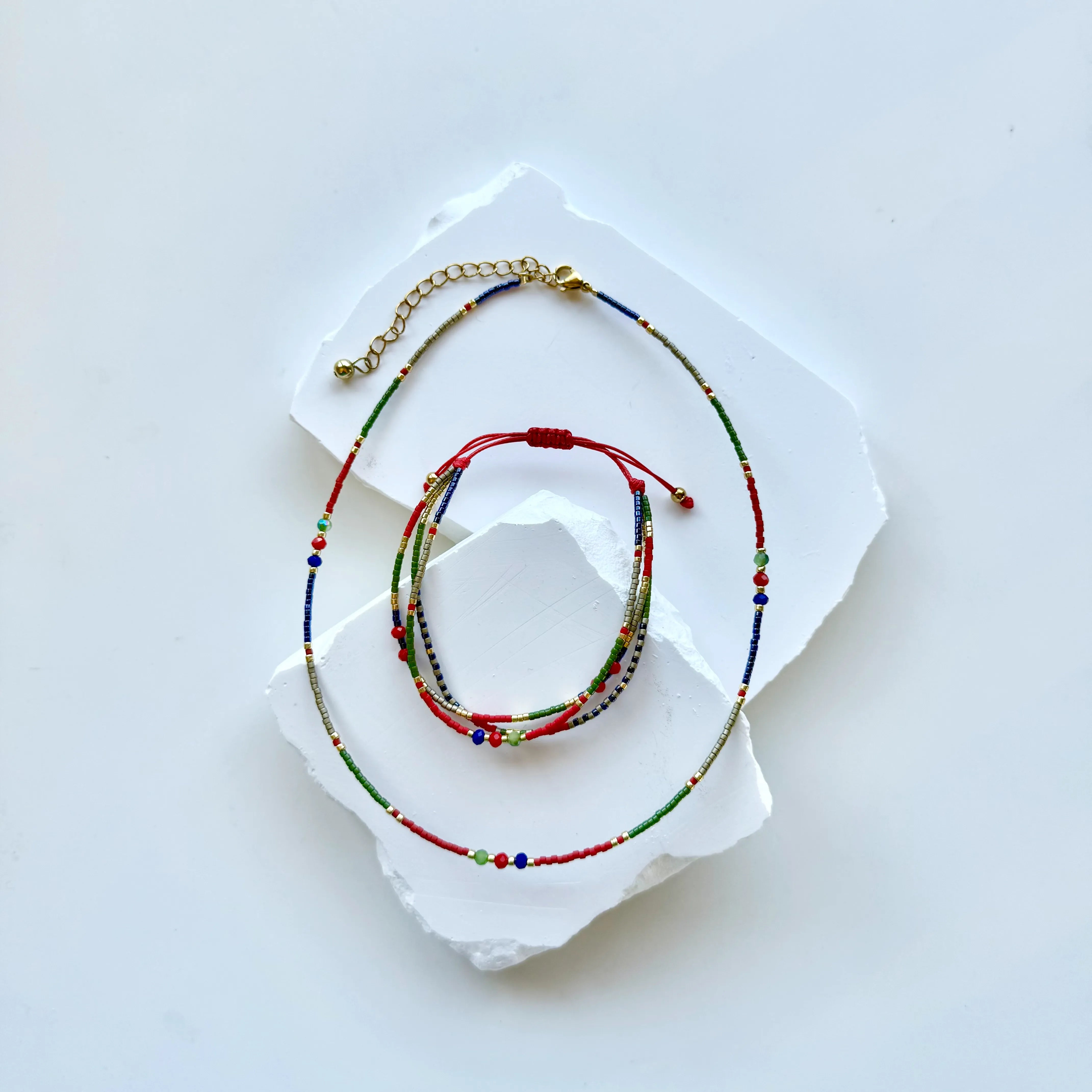Indie Layers Bead Bracelet - Red/Green/Navy