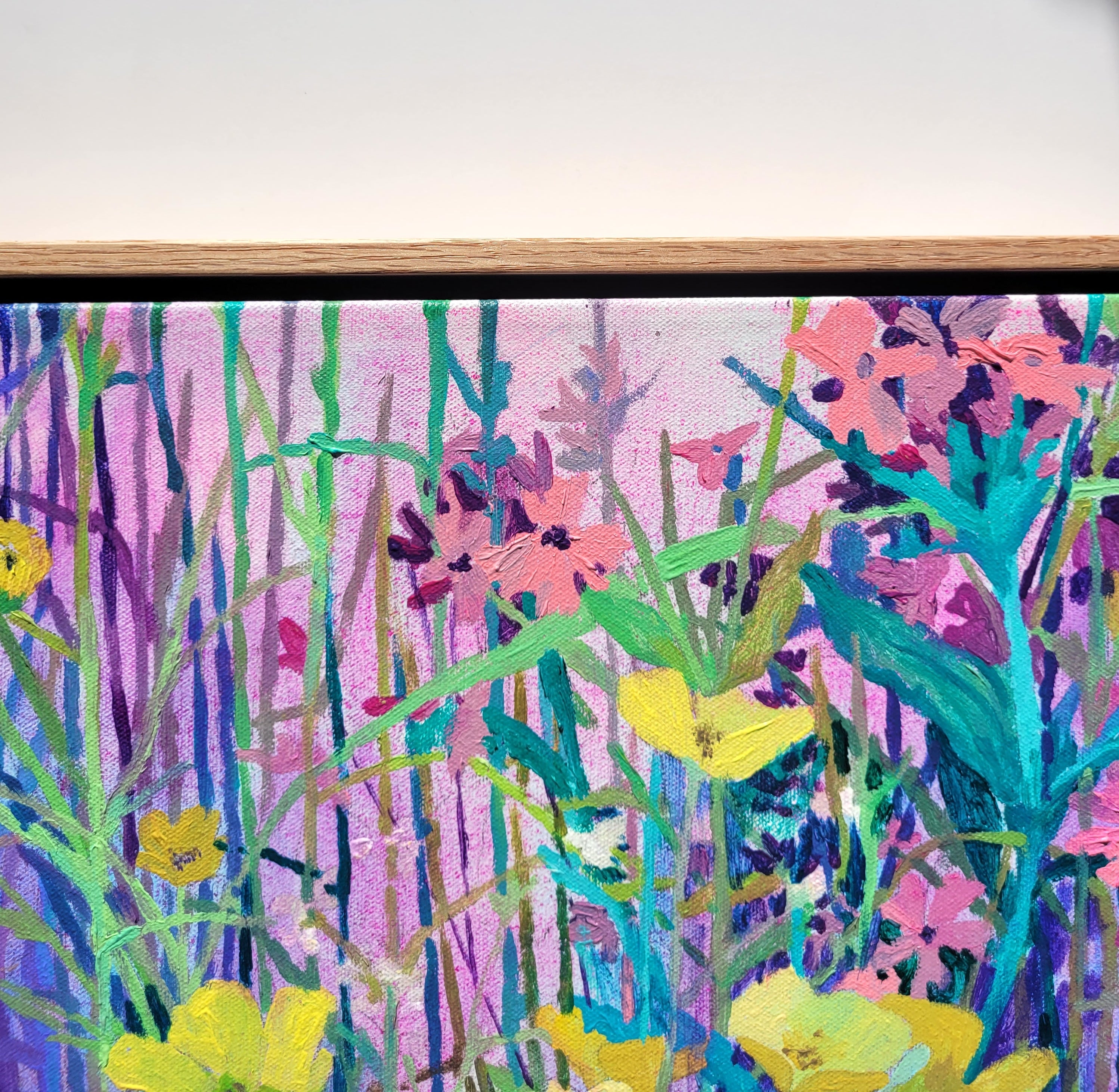 This collection of paintings invites the viewer into immersive fields of wildflowers, bursting with bright, vibrant colour. Buttercups, daisies, and tangled grasses gather in luminous layers, with glowing tones that create a sense of warmth, energy, and life.