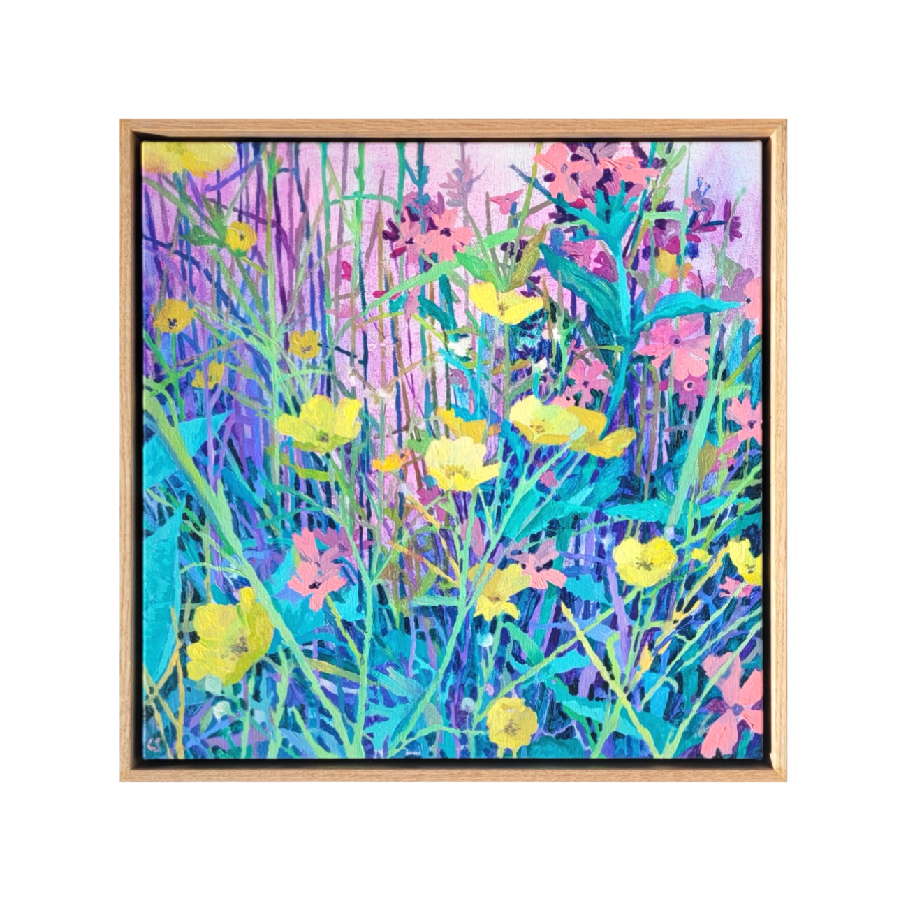 Acrylic on canvas, framed in Oak, ready to hang.