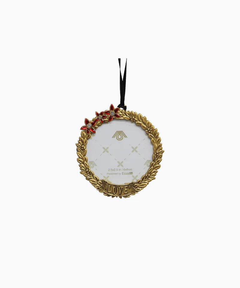 The Hanging Round Frame is a sweet addition to any Christmas tree. Stamped with the word "Love" this delicate hanging picture frame really makes a wonderful gift for a loved one this Christmas.