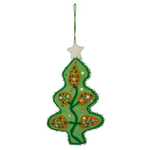 Beaded Xmas Tree Hanger Fab 8x10cm Grn