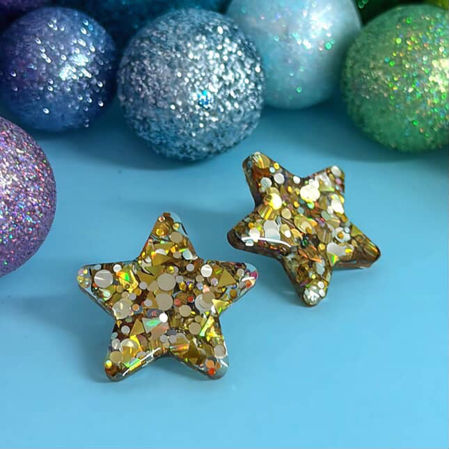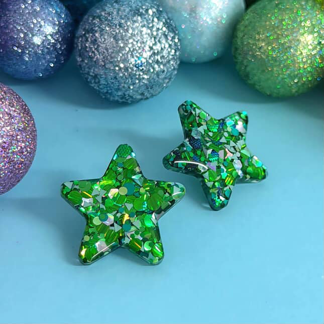 EMERALD STARDUST CHRISTMAS TREES : Handmade Resin STUD Earrings