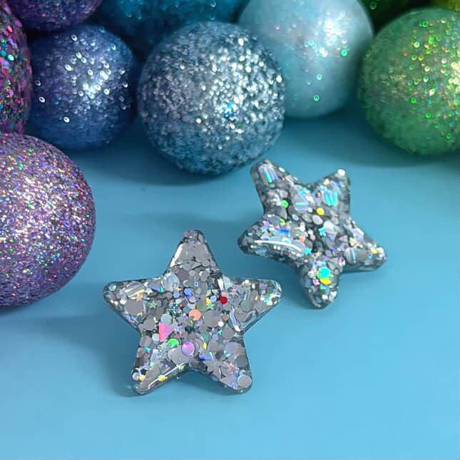 RUBY STARDUST CHRISTMAS TREES : Handmade Resin STUD Earrings