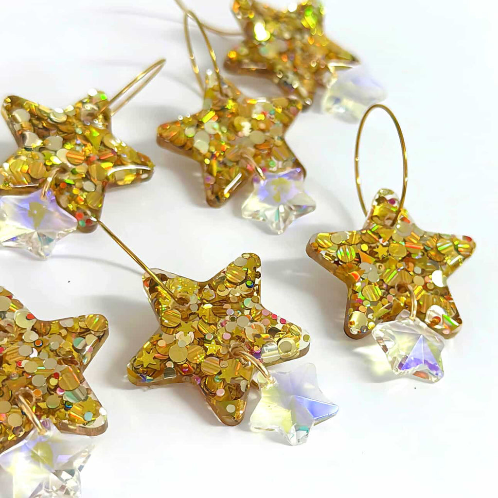 TWINKLING LIGHTS STARS GOLD with Swarovski Crystal drops