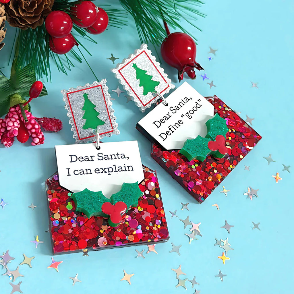 DEAR SANTA : Ruby Red Letters : Handmade Resin & Acrylic DROP Earrings