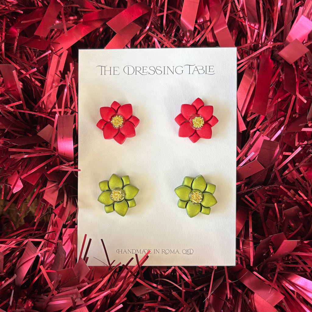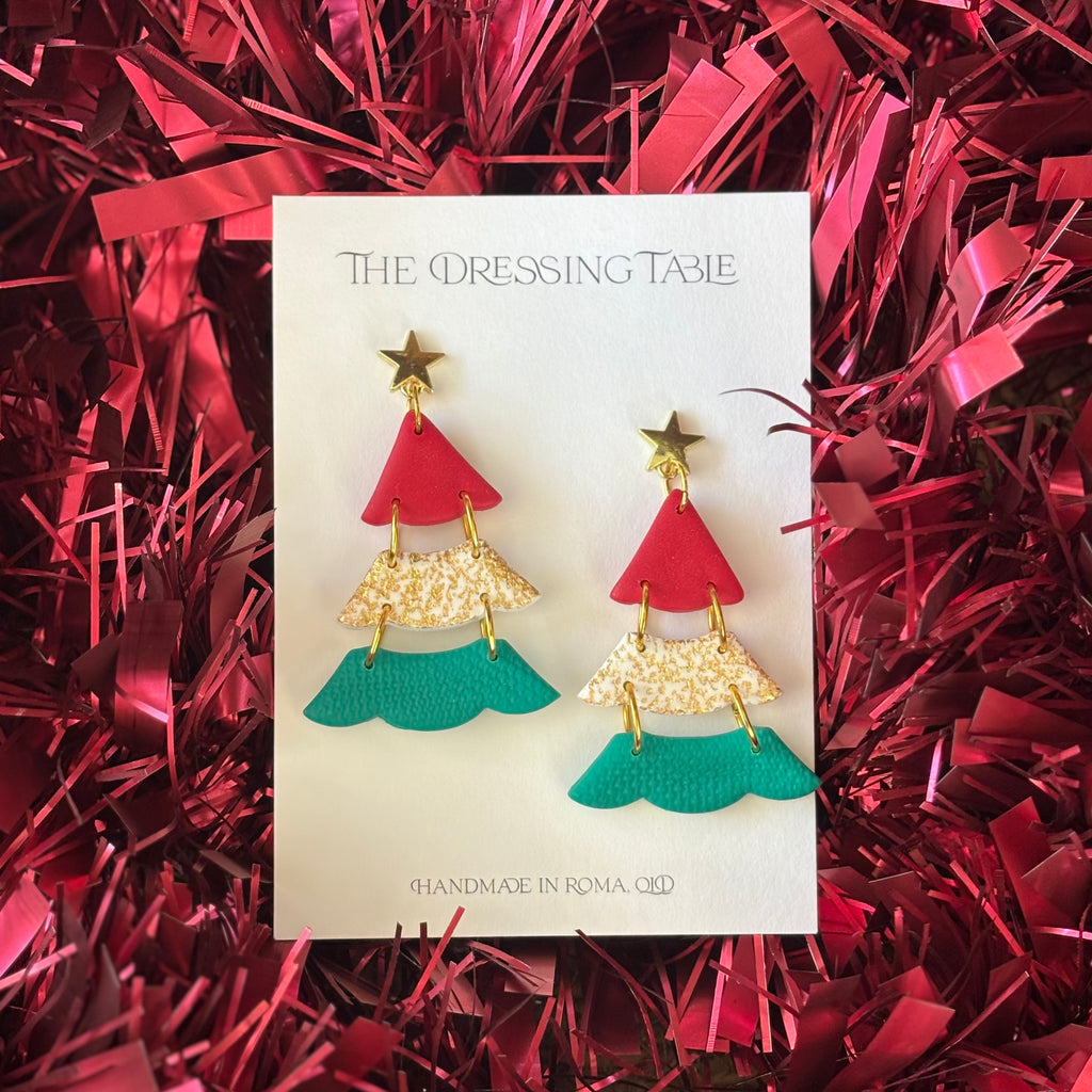 TWINKLING LIGHTS : RUBY CHRISTMAS TREES : Handmade Resin & Acrylic Stud-top DROP Earrings