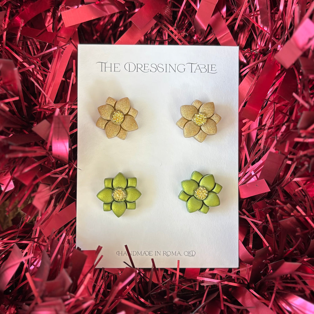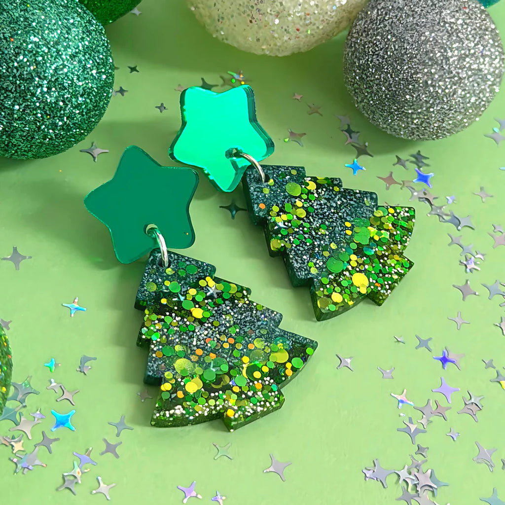 TWINKLING LIGHTS : EMERALD CHRISTMAS TREES : Handmade Resin & Acrylic Stud-top DROP Earrings