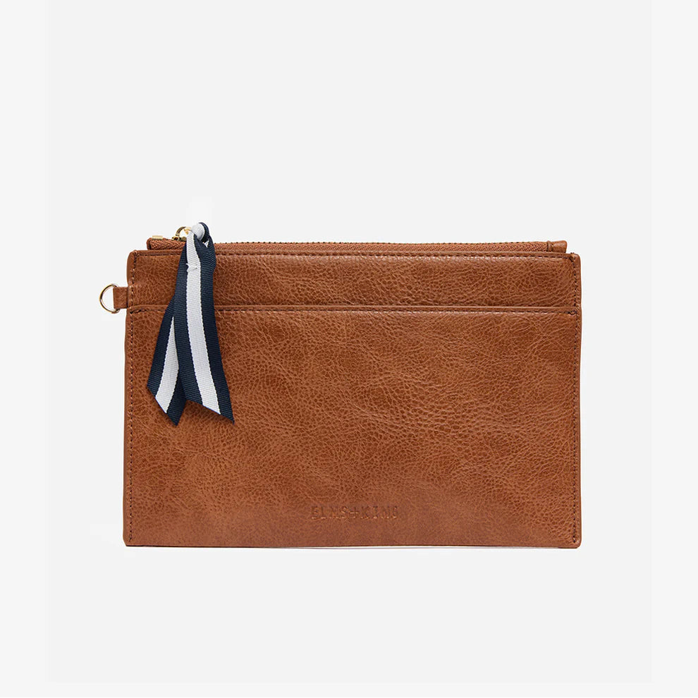 The Elms+King New York Coin Purse is made from premium polyurethane, with slim line construction. The coin purse features a front open top, slip pocket with a hidden magnetic closure. The centre compartment has a top zipper closure with an accent ribbon zipper pull.