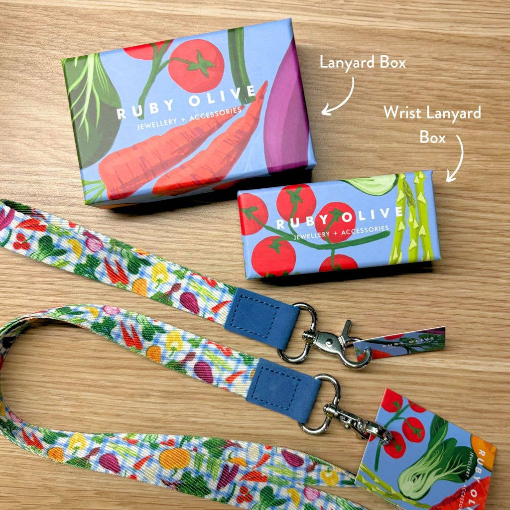 Why you'll love it: * Striped to Delight: A playful mashup of colourful veggies on a gingham background * Eco-Friendly Materials: Canvas made from recycled water bottles * Easy Comfort: Lightweight and soft, perfect for daily wear * Safety Meets Style: Includes sturdy metal clasp and breakaway feature * Made for Bright Sparks: Teachers, creatives, event planners, and everyday icons * Gift boxed: Perfect for gifting or storage! Size: Approx. 50cm drop (100cm full length) Artist: Gabrielle Neil