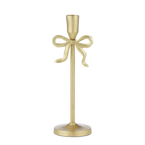 Elevate your table setting with this sophisticated bow metal candleholder, crafted to add refined elegance to any décor. Measuring 10.5x24.5cm, its distinctive bow design combines contemporary style with timeless appeal. The warm gold finish complements both modern and traditional interiors, making it versatile for everyday use or special occasions. Perfect for creating ambient lighting during dinner parties, intimate gatherings, or quiet evenings at home.