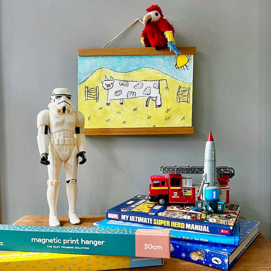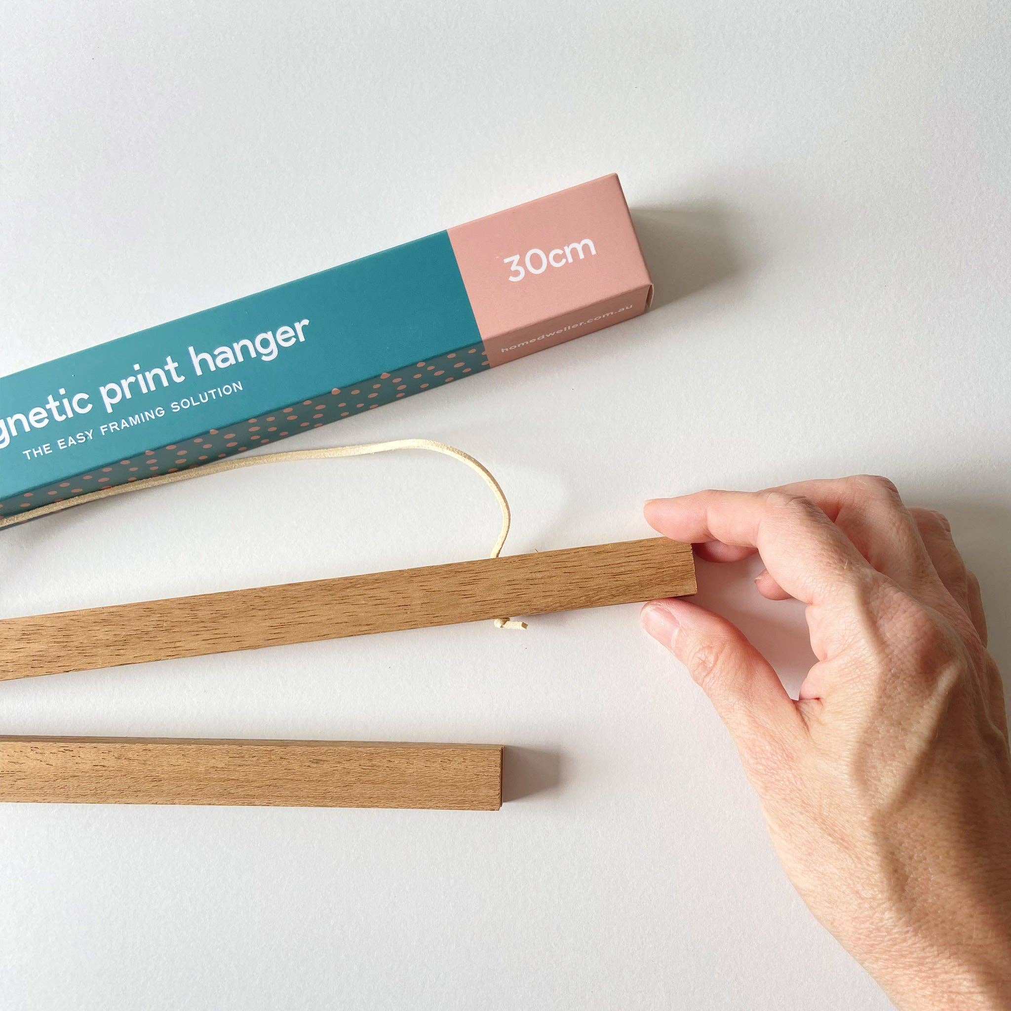 Our 30cm Magnetic Print Hanger is the simple, modern way to display posters, art prints, photos, or kids’ artwork. Strong magnets in natural wooden bars hold prints securely — no glass, tape, or tools needed. Just clamp and hang for an instant, minimalist display that’s easy to change anytime. Lightweight and versatile, this hanger is a perfect add-on with art prints and art kits.