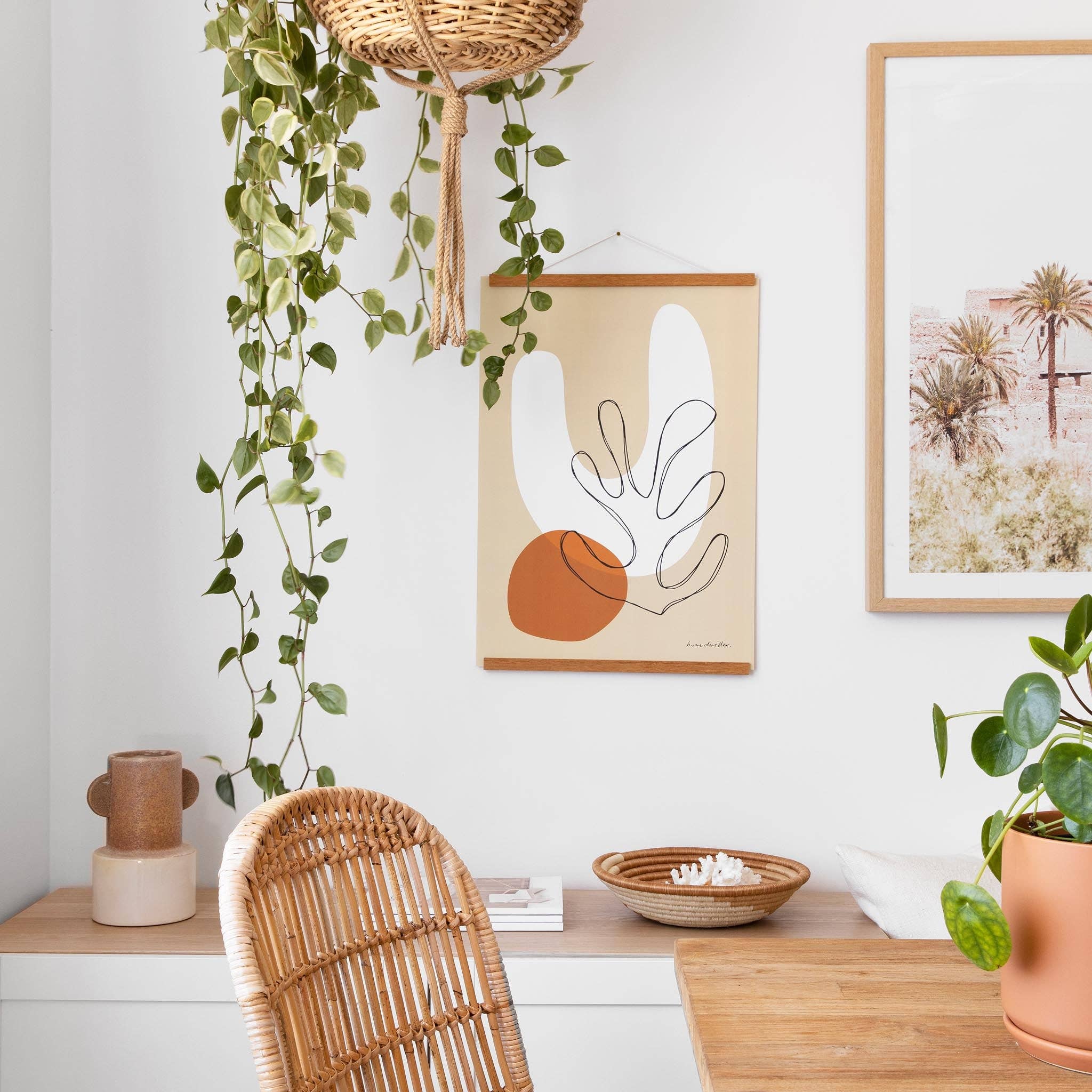 Strong magnets in natural wooden bars hold larger posters, prints, tea towels, or fabric art securely — no glass, tape, or tools needed. Just clamp and hang for an instant, minimalist display that’s simple to update anytime. Lightweight, versatile, and a proven add-on with art prints, tea towels, or fabric wall hangings. Customers love this sustainable decor idea and affordable gift under $35 AUD. Perfect for: