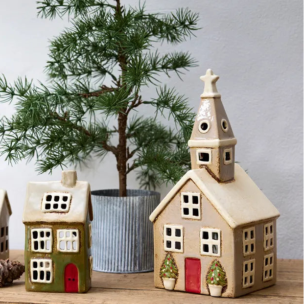 Create a magical village with our traditional tealight houses, designed to resemble festive scenes each house has intricate details and hand-painted features.