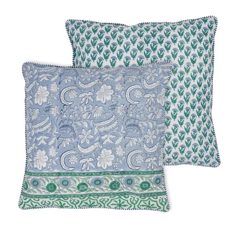 Anika Cotton Block Cushion 50x50cm Emerald
