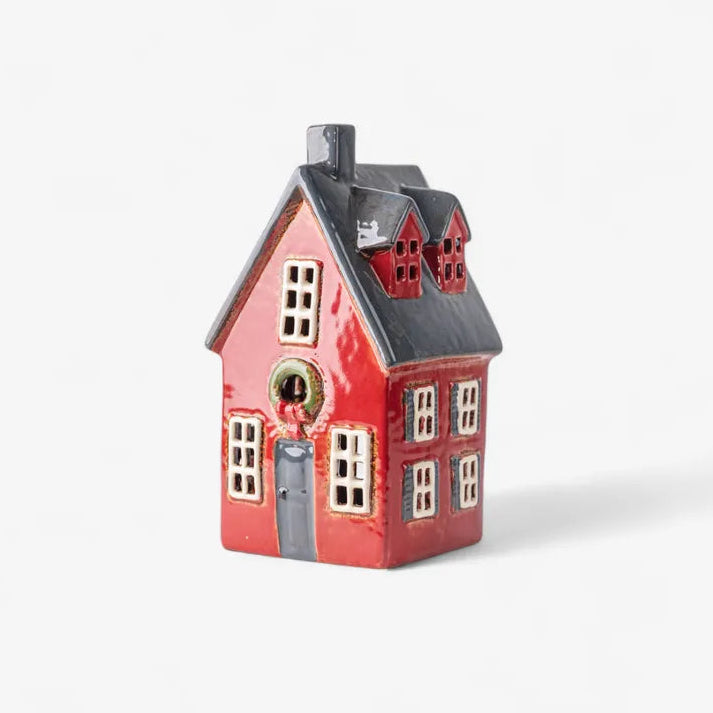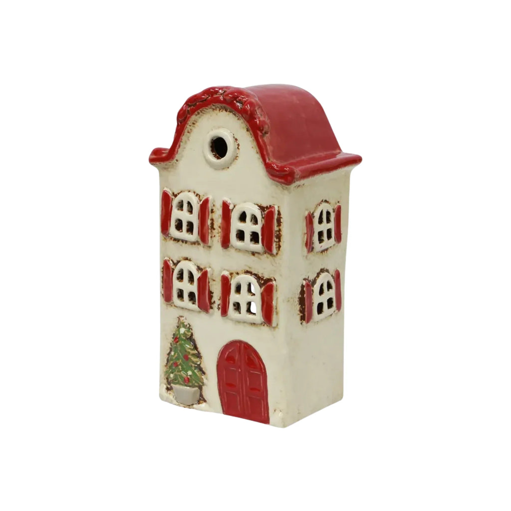 Alsace Tea Light Villa Christmas Stone with Red Shutters