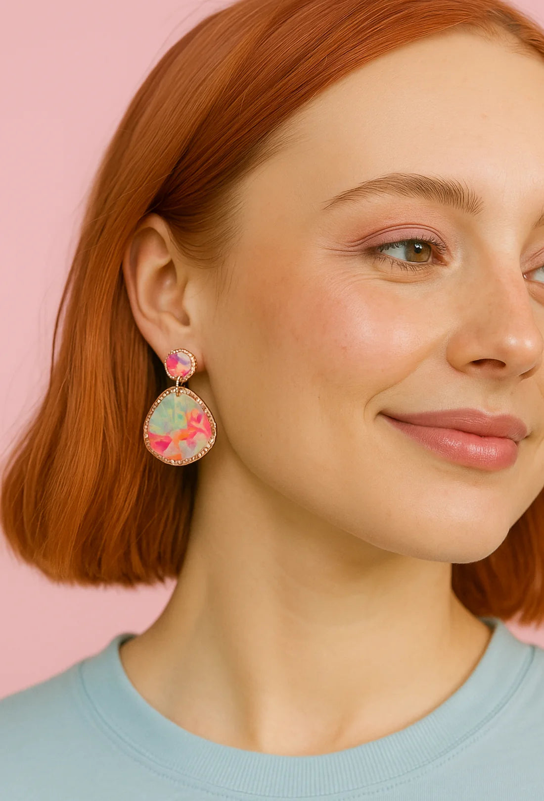 Each earring is carefully designed with multiple layers of colour, texture, and original artwork – creating depth and detail that makes every pair completely unique.