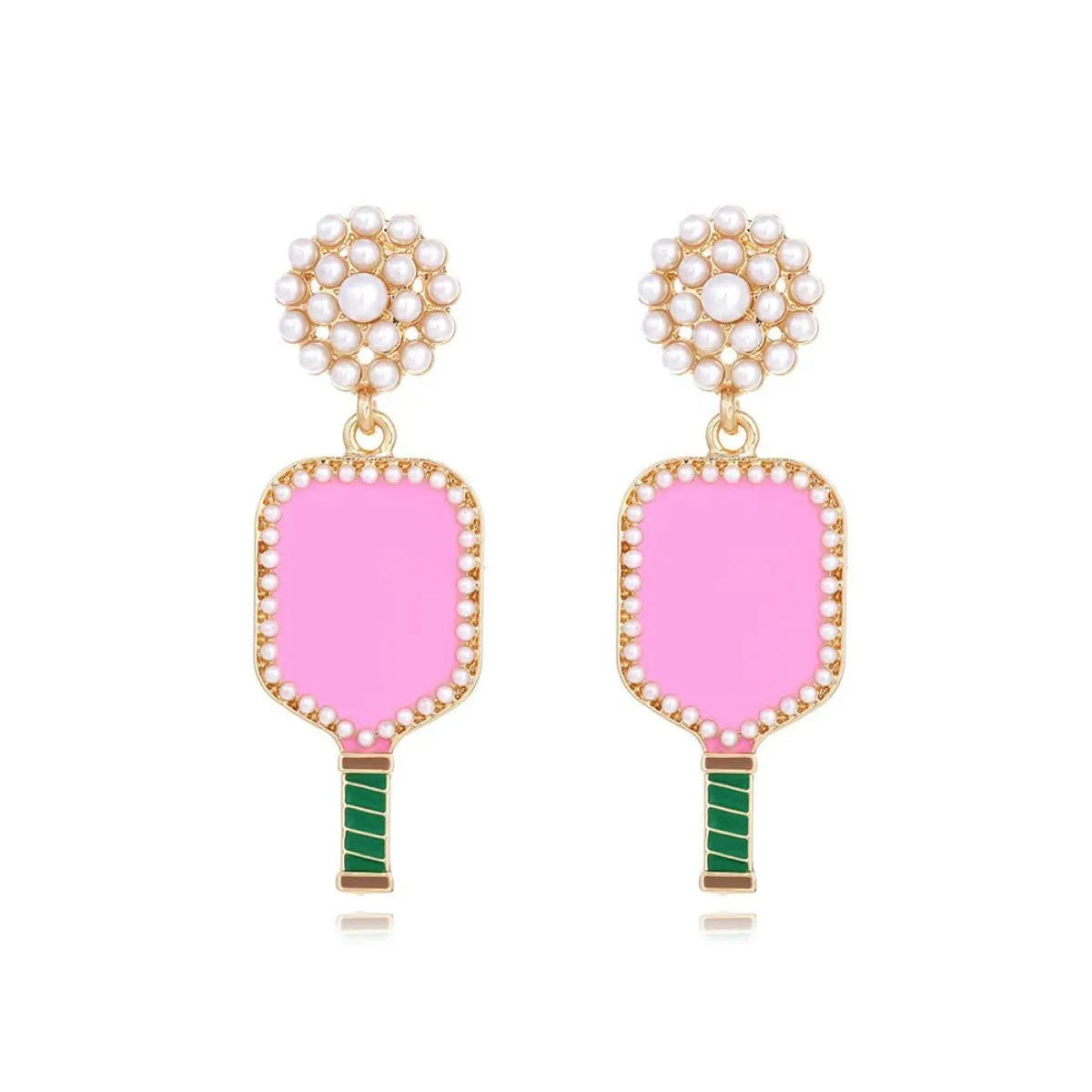 The Jorja earrings serve up a playful twist on sporty style! Mini faux pearls form the ‘ball’ stud, while a pink enamel pickleball bat dangles below. Fun, quirky, and totally out-of-the-box — perfect for pickleball fans or anyone who loves earrings with a cheeky sense of humour.