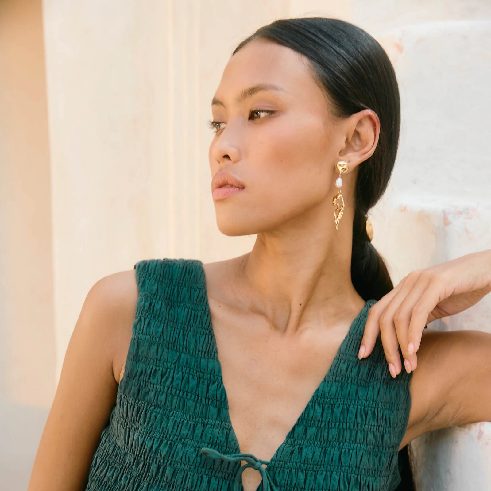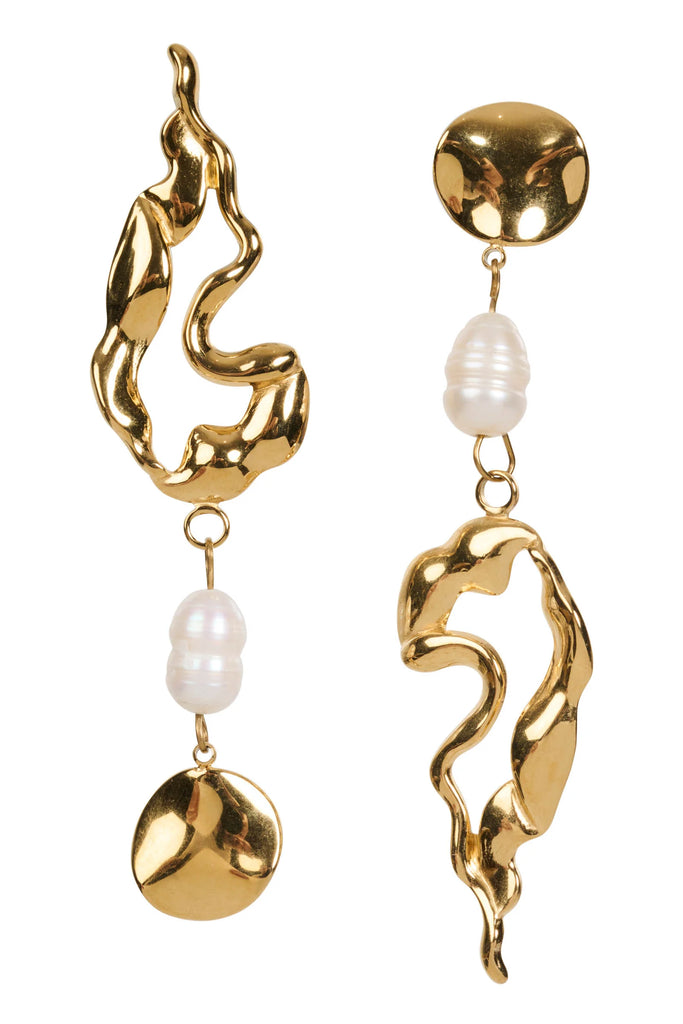 A playfully mismatched pair, reminiscent of the natural world, the Ripple Earrings balance soft pearls and sculpted shapes for a statement with softness.