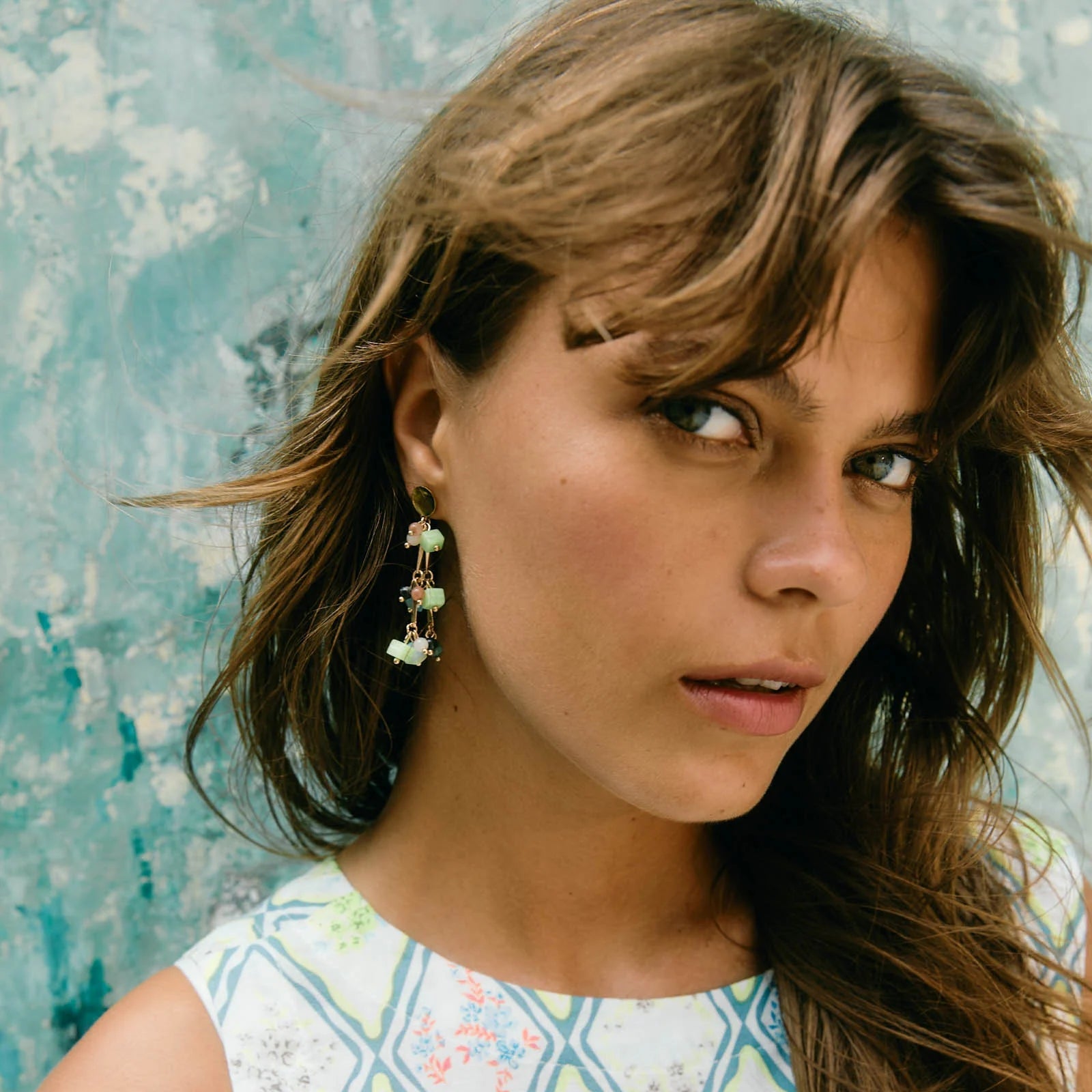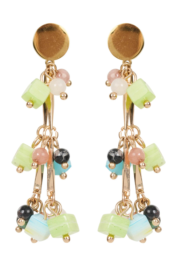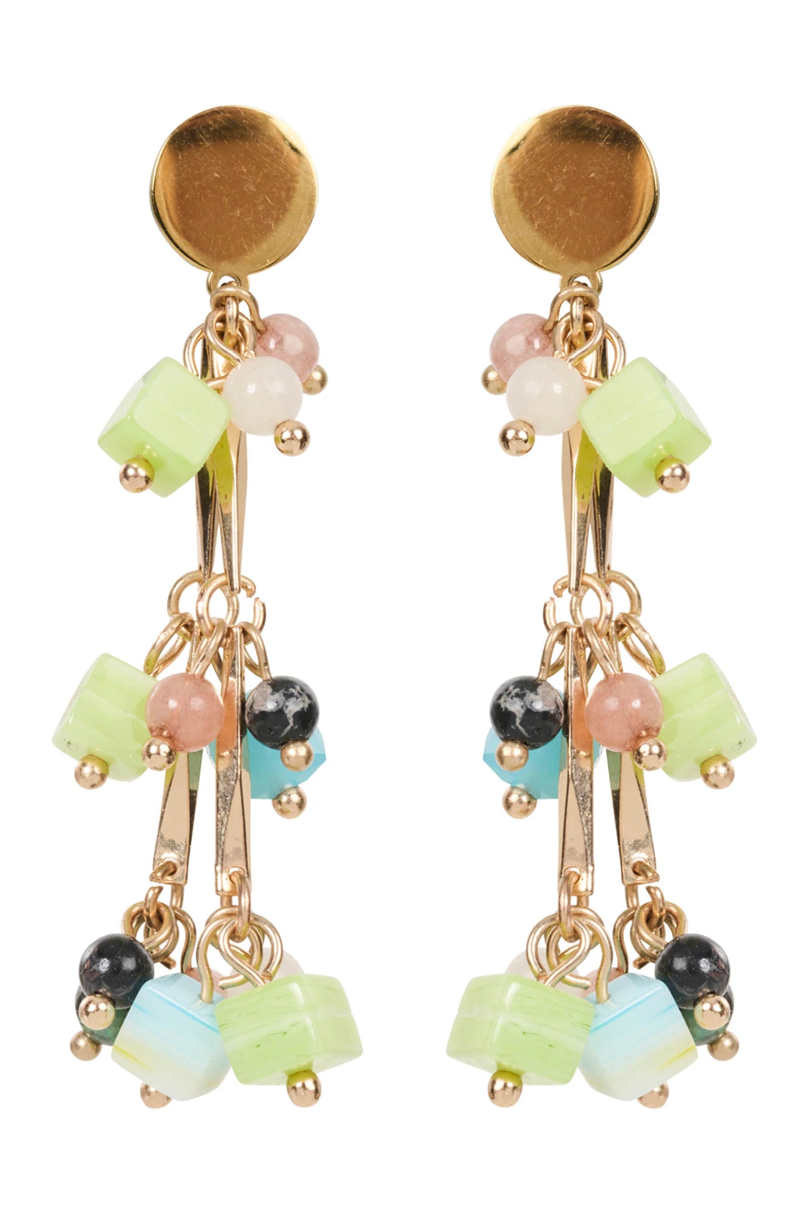 Colourful but quiet, the Ingrid Bead Earring Mix blends cube and round beads in earthy greens, blues and pinks.