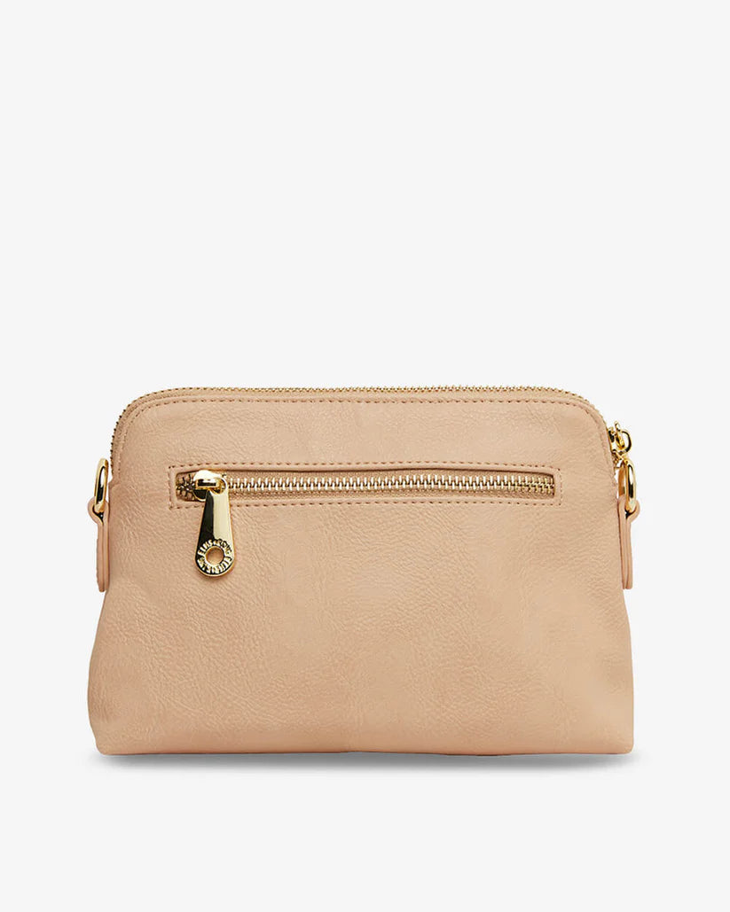 The Elms and King Burbank Crossbody offers compact functionality and the hands-free ease of a cross body. Made from premium polyurethane with 14-karat light gold-plated hardware, the Burbank interior features 3 credit cards, our signature blue& white gingham lining and ample depth for all your essentials. The crossbody features two strap options, one wide cotton webbing strap, adjustable to 140cm and a second narrow PU strap, also adjustable to 140cm.
