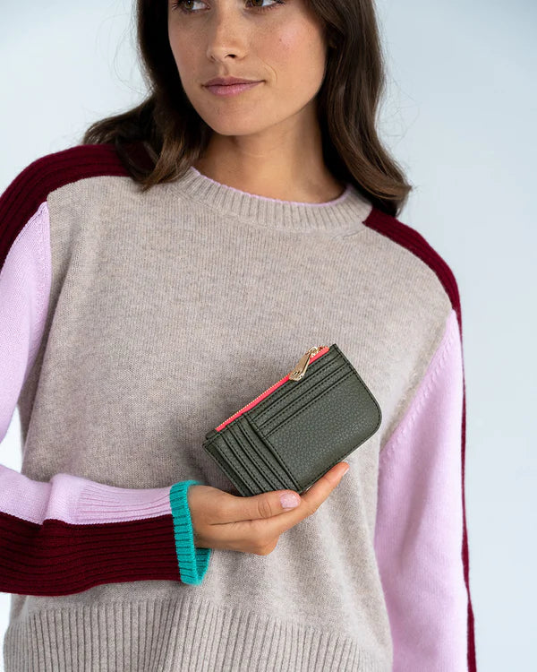 The Elms+King Centro Wallet is made from recycled premium polyurethane, with a slim line construction. The wallet features a top zipper closure, centre pocket and 8 rear mounted card slots. Material: Made from recycled premium polyurethane (PU)