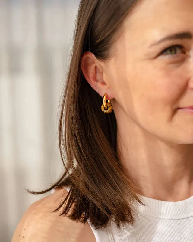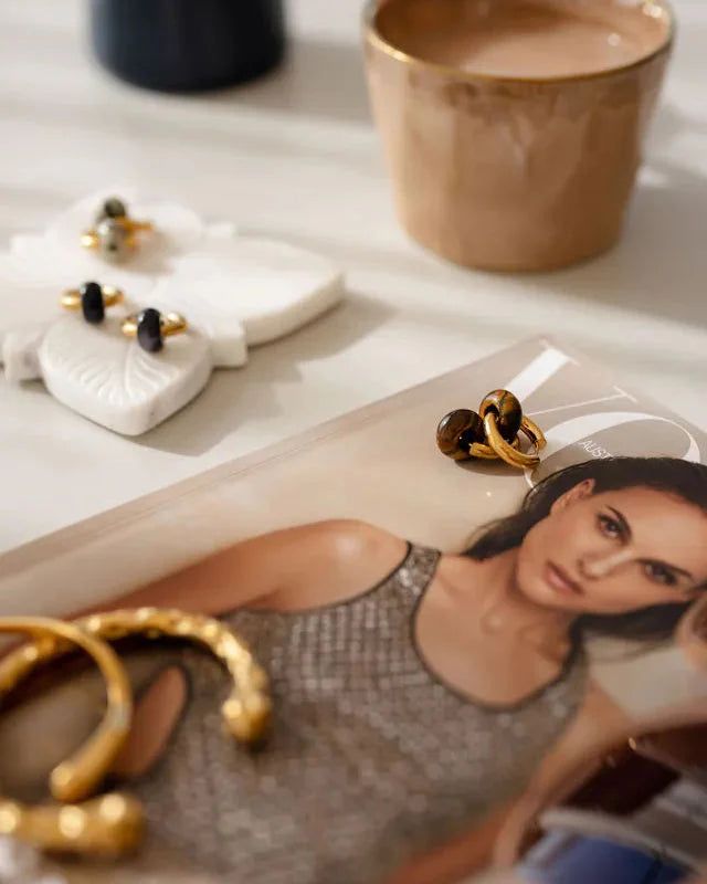 Say hello to Astrid—she’s giving major “back in vogue” vibes with a modern twist. Featuring a brown tiger eye textured bead on a sleek gold hoop, she brings the perfect balance of retro charm and effortless style. The best part? You can remove the bead and wear the gold hoop on its own—hello, classic 2-in-1 magic! Whether you’re rocking vintage denim or dressing things up a bit, Astrid’s got your back (and your ears). No fuss, no frills—just easy, everyday cool.