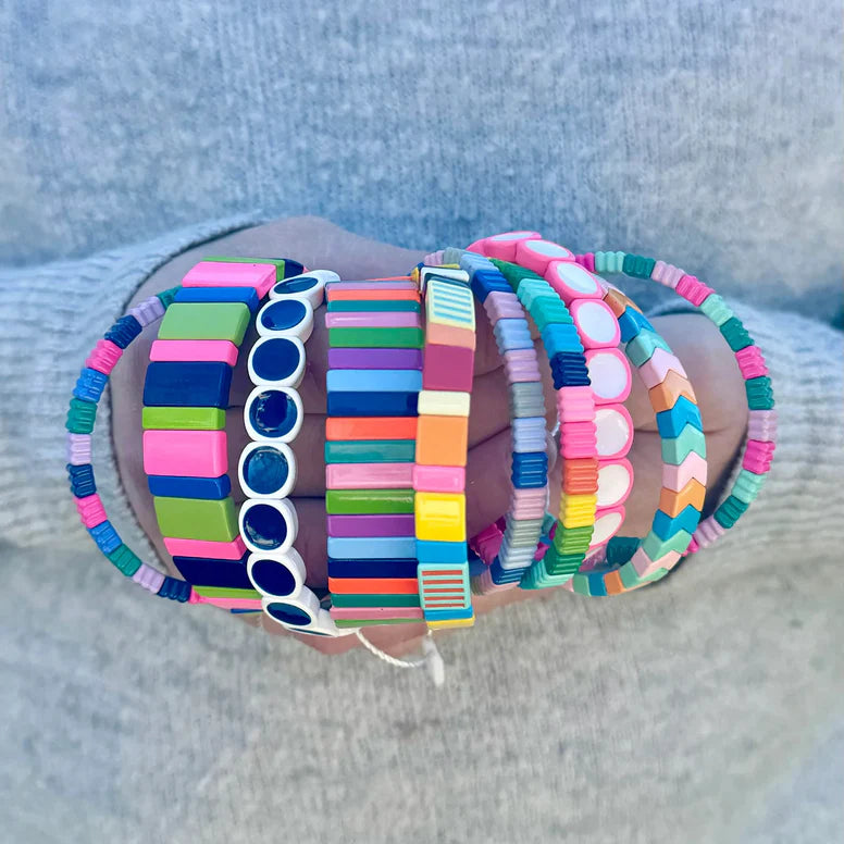 Discover our elasticated enamel beaded bracelets in all the colours of the rainbow!