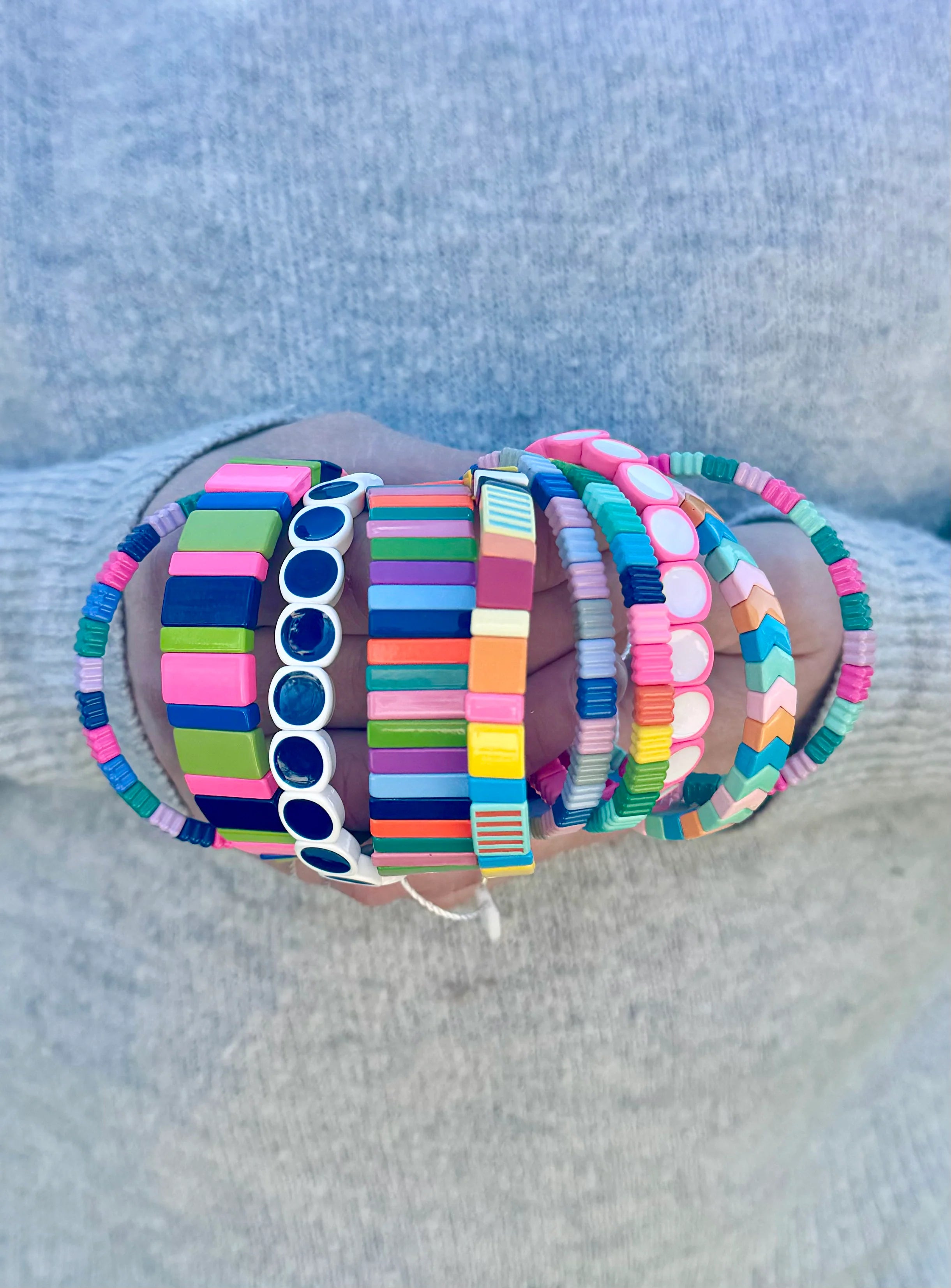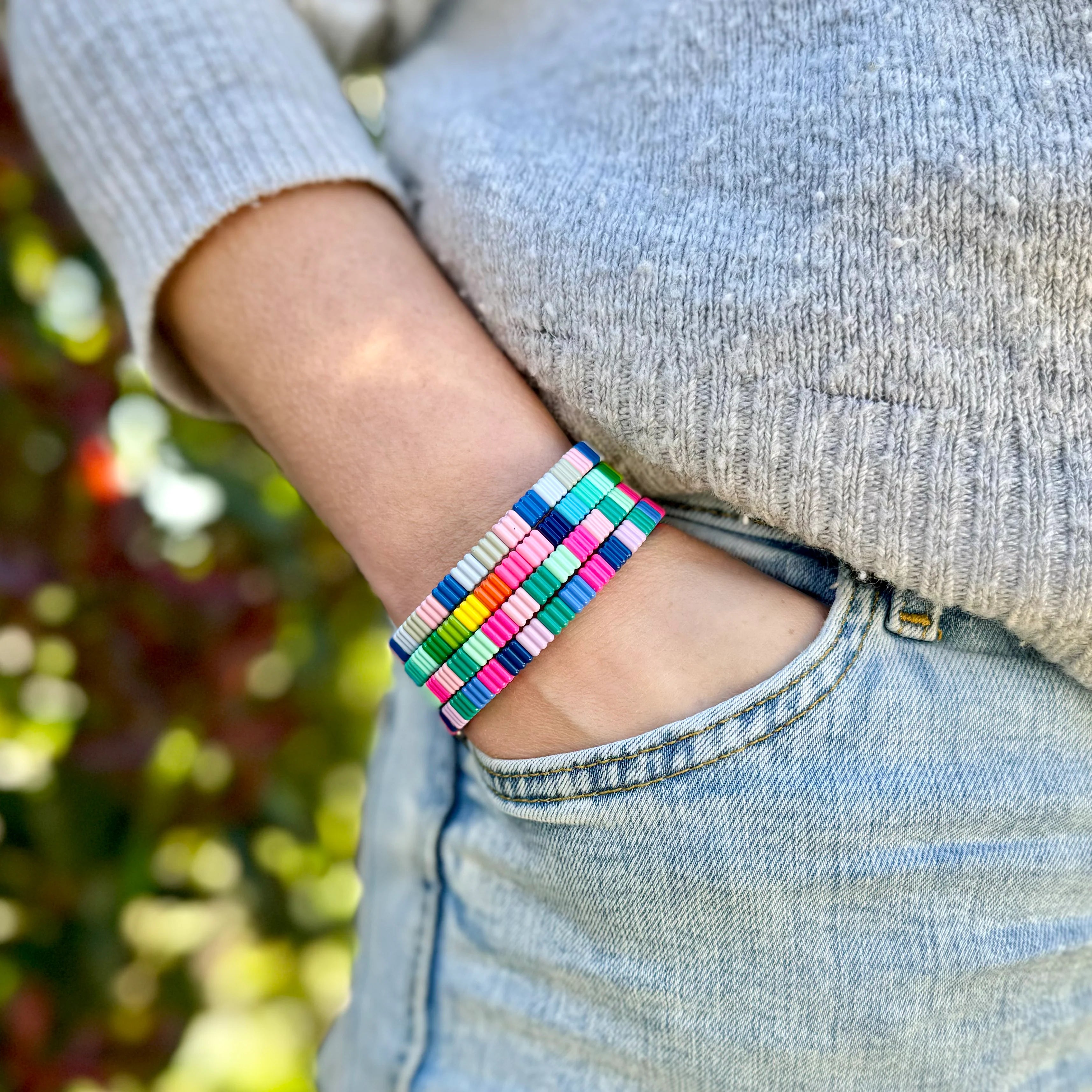 Discover our elasticated enamel beaded bracelets in all the colours of the rainbow!