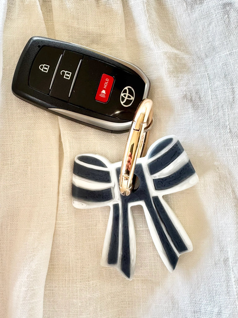 Stripey Bow Resin Keyrings - Baby Blue/White