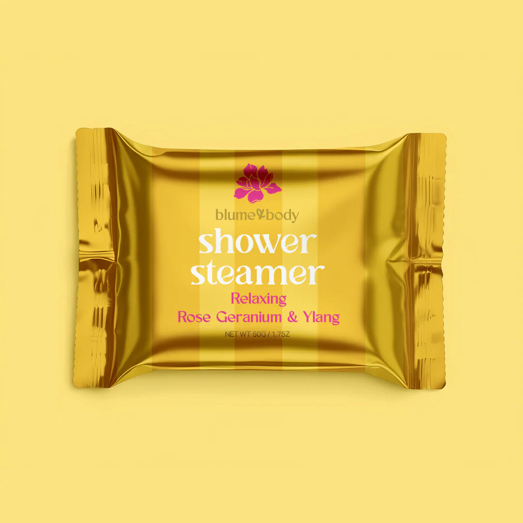 A floral and sweet aroma essential oil shower steamer with warm ROSE GERANIUM, HONEY and YLANG YLANG. Run a hot shower, let your shower steamer get wet, set aside while it fizzes. Breathe deep, relax and reset while the aroma lingers in the steam. Reposition as needed for best results.