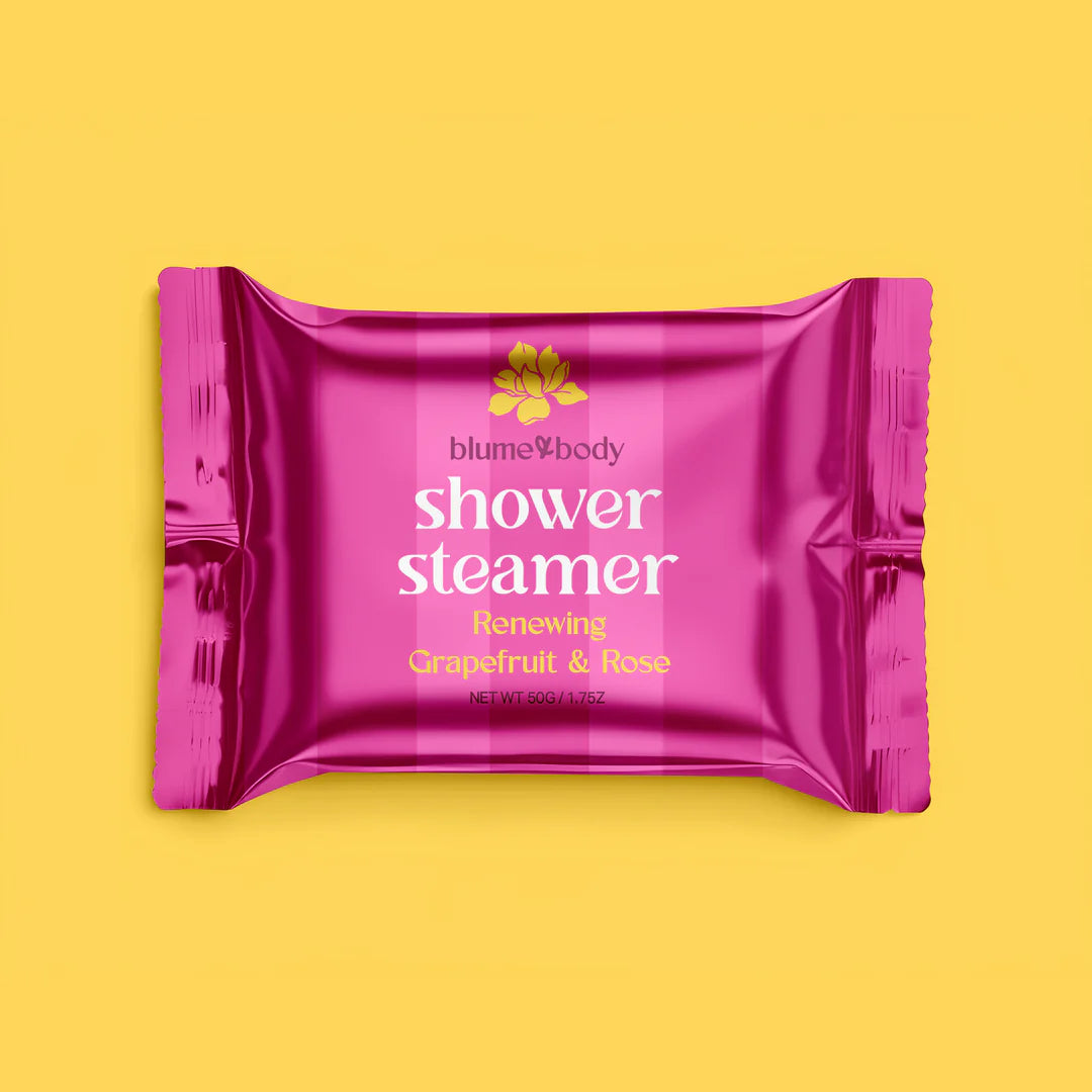 A warm and sweet aroma essential oil shower steamer with fruity PINK GRAPEFRUIT, PLUM and ROSE. Run a hot shower, let your shower steamer get wet, set aside while it fizzes. Breathe deep, relax and reset while the aroma lingers in the steam. Reposition as needed for best results.