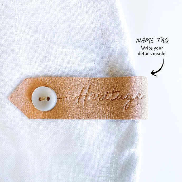 - Beautiful button-up 'Return to' label for names to help hats get home safely.