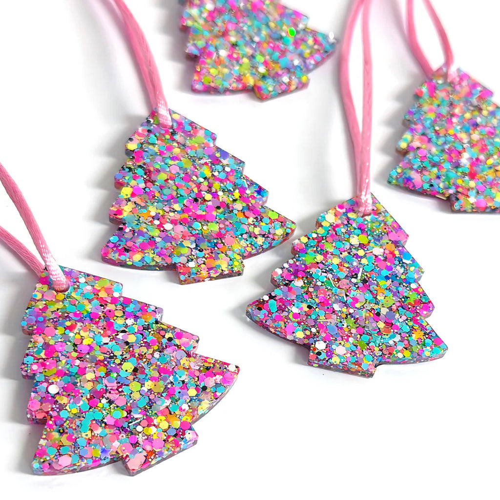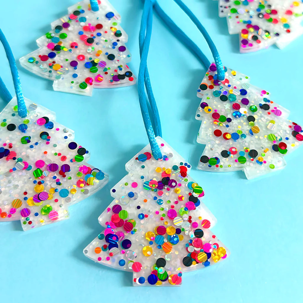 CHRISTMAS TREE : RAINBOW CONFETTI : Handmade Resin Tree Ornaments