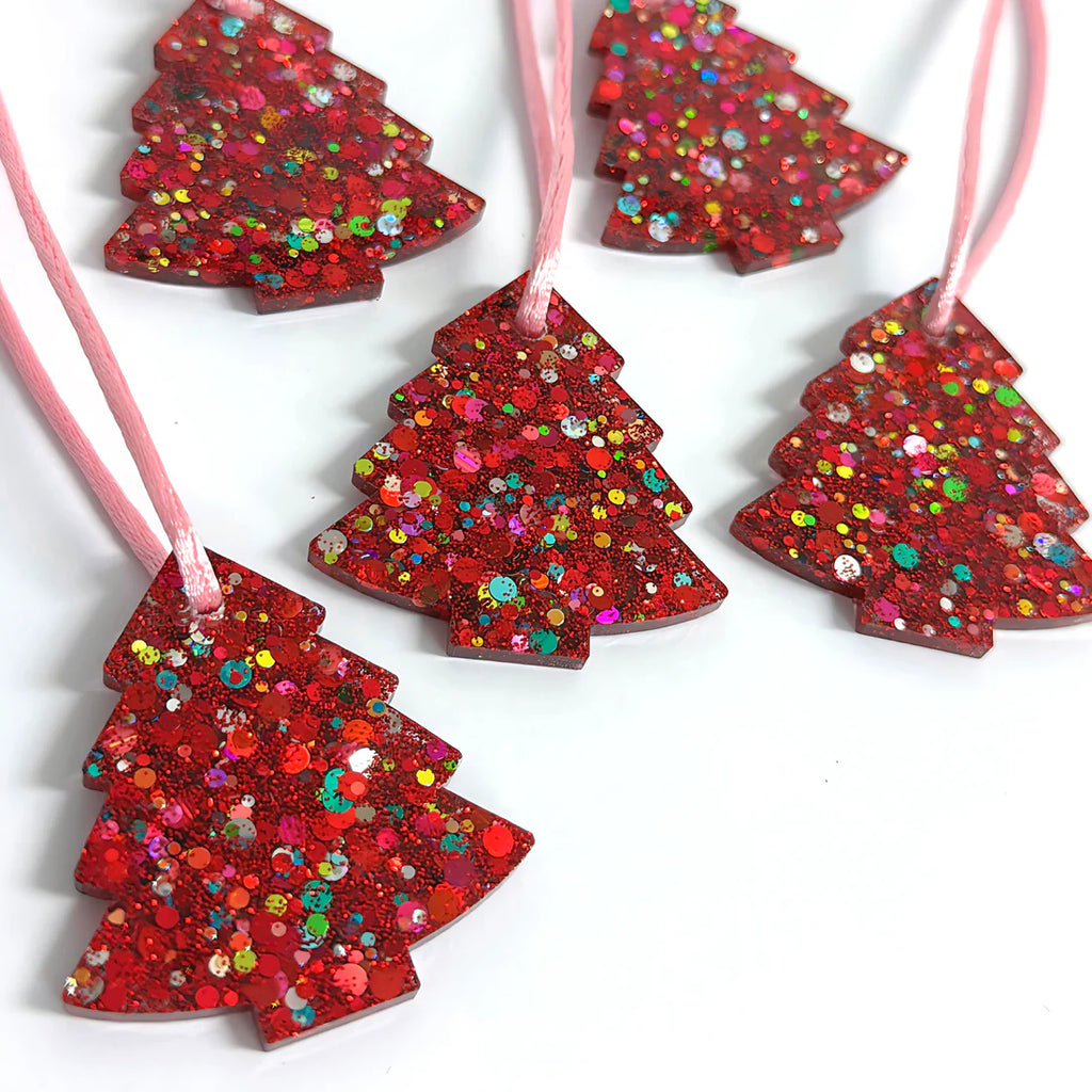 CHRISTMAS TREE : RUBY STARDUST : Handmade Resin Tree Ornaments