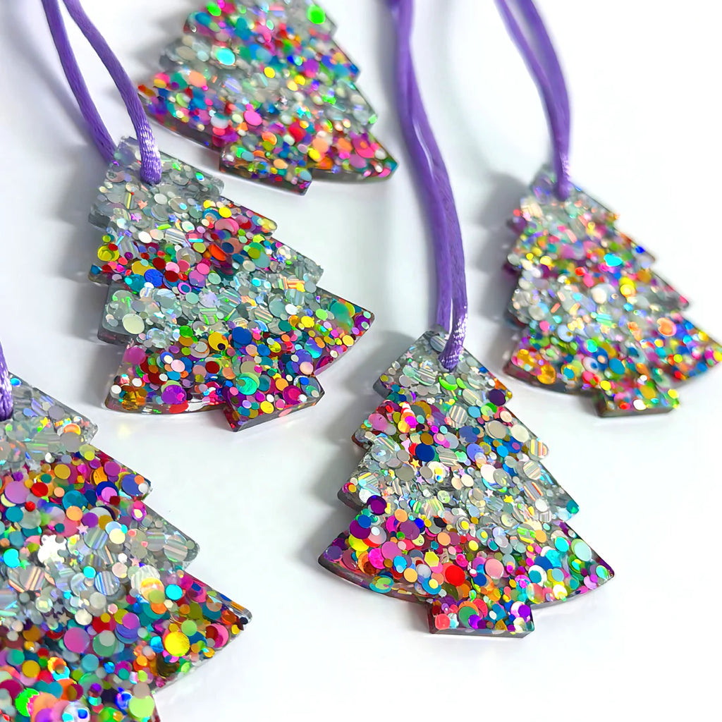 CHRISTMAS TREE : SILVER RAINBOW CONFETTI : Handmade Resin Tree Ornaments
