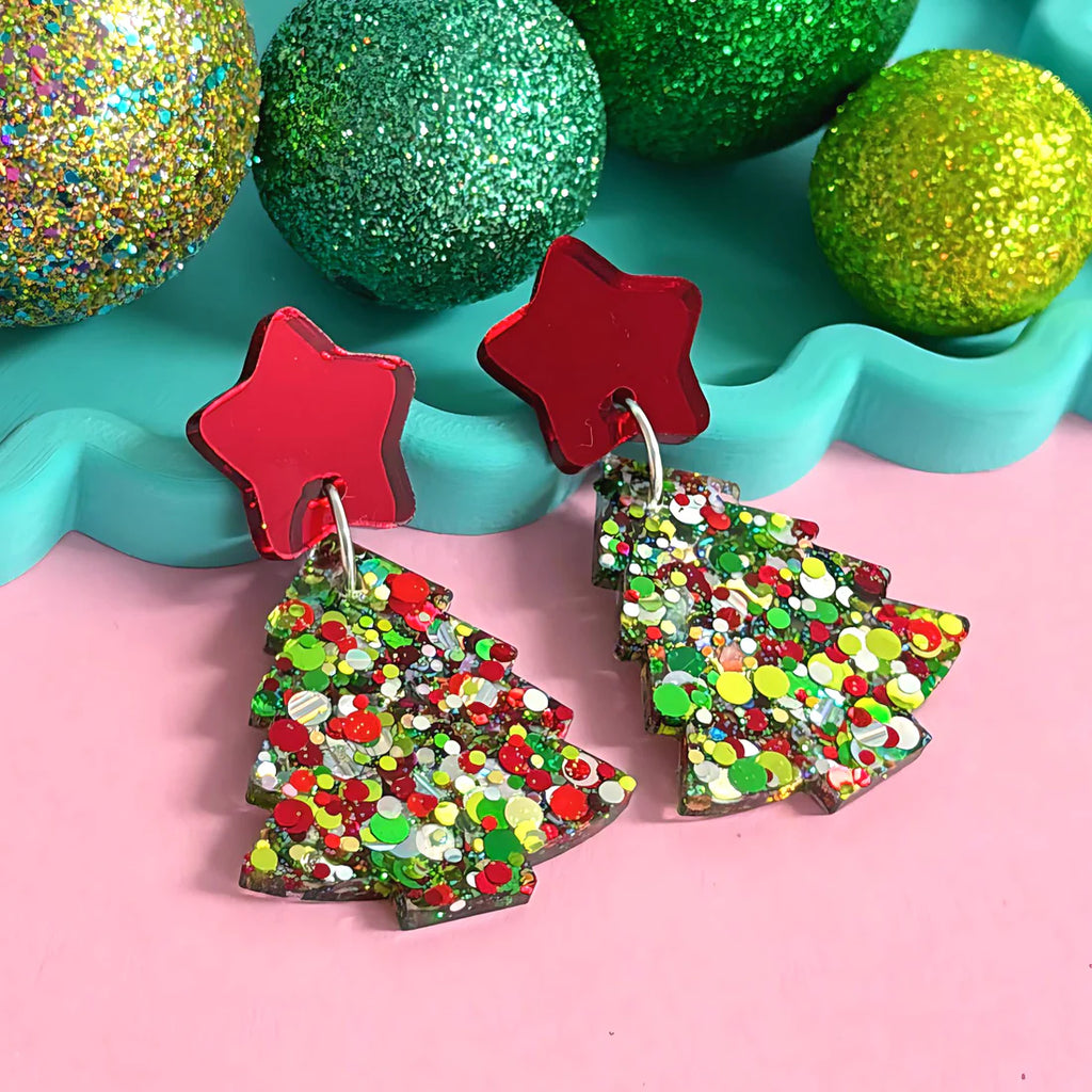TWINKLING LIGHTS : RUBY CHRISTMAS TREES : Handmade Resin & Acrylic Stud-top DROP Earrings