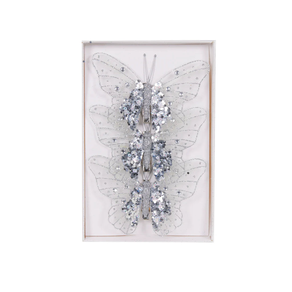 Set/3 Silver Glitter Butterfly Clips