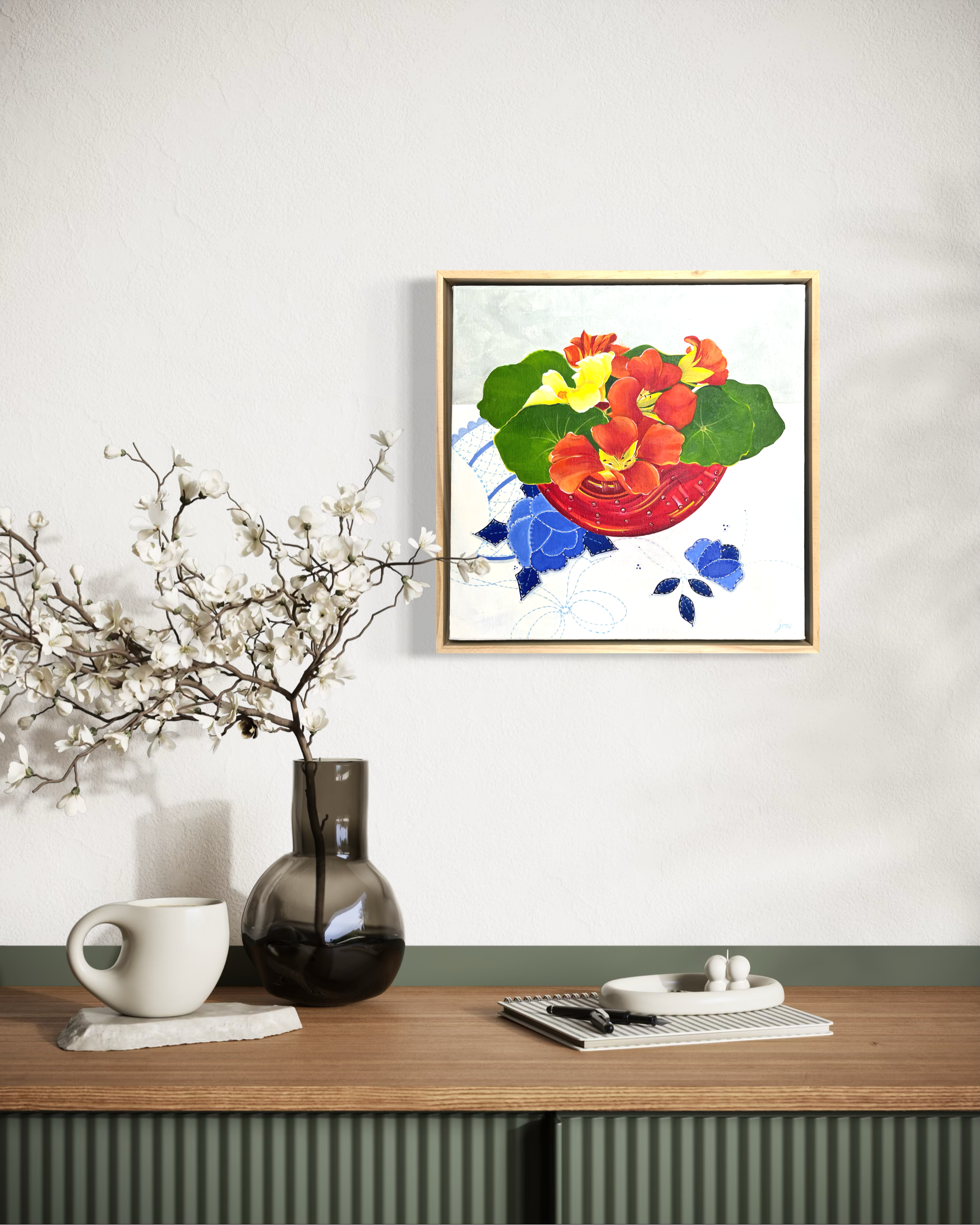 Sunday Table with Nasturiums (32.5x32.5cm) Jen White