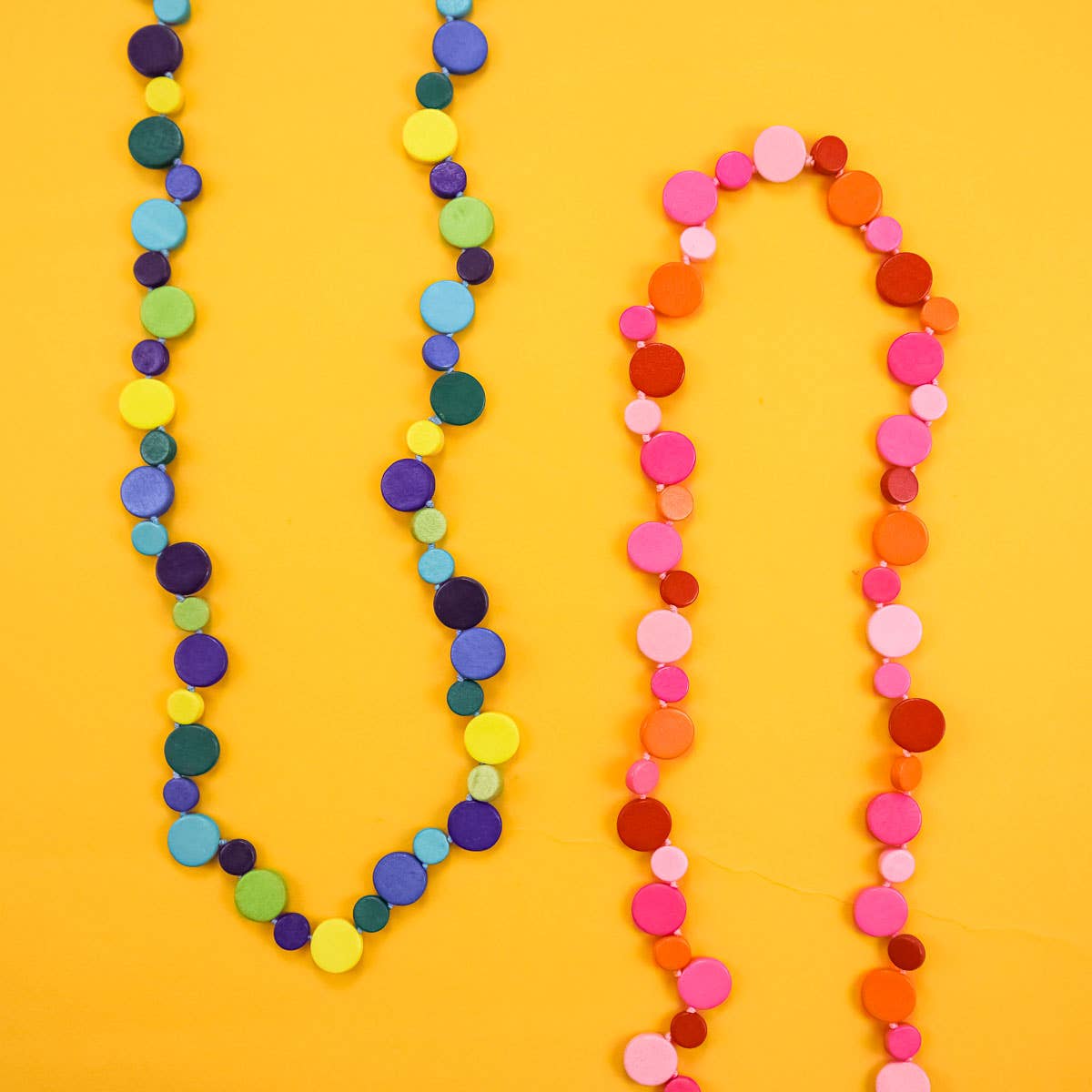 The Smartie Long Wood Necklace is made from sustainably sourced coconut wood beads and strung on high quality cord as a finished single strand (no clasp or metal components). Making it super lightweight and oh so versatile!