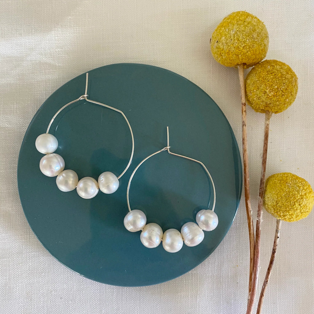 Greenwood Freshwater 5 Pearl Hoops || Sterling Silver