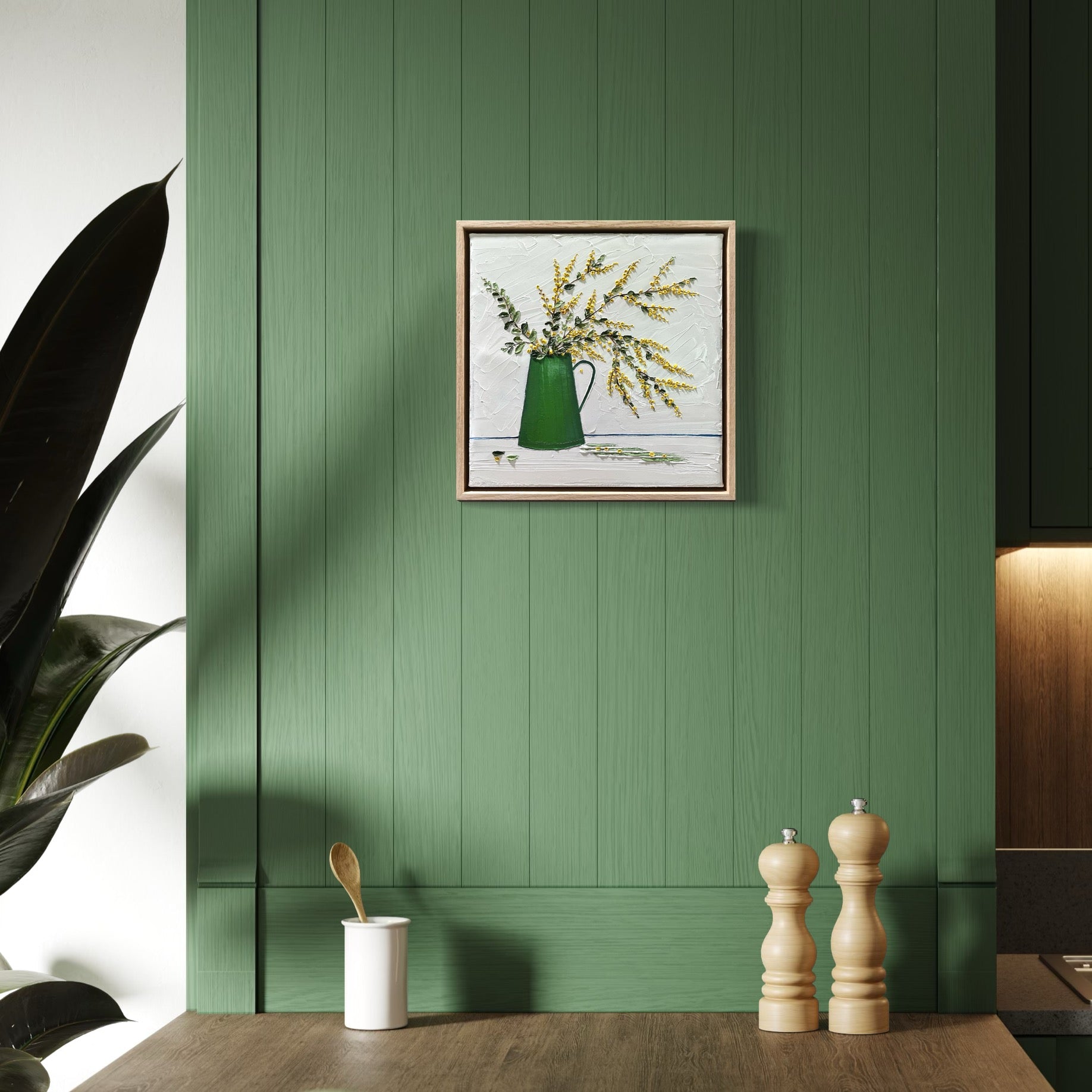 Cascading Wattle in a Green Jug (33x33cm) Justine Bartie
